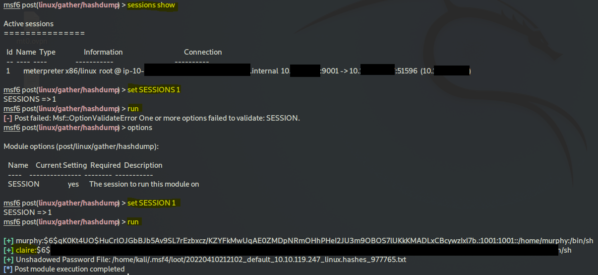 and you should find your hash, remember the hash itself is comprised of three components, the actual hash hash is the middle one between : and :::