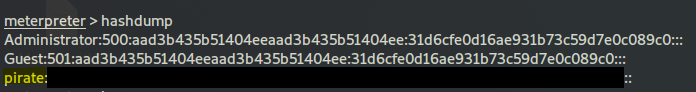 ((Preface = this was a major headache for me as I had to restart the target machine multiple times because sometimes the exploit worked and mostly it failed. Had to restart my own machine once. I first had a successful exploit by using a "generic/shell_reverse_tcp" payload. And was able to spawn a reverse command shell and successfully grab the flag. However, backgrounding the sessions and attempting to spawn/upgrade to a meterpreter shell so that I could use the hashdump functionality (search hashdump), always failed because the "wrong shell" was being used or at least msf thought so. So, instead I optioned to use the default payload that is set when you use the ms17 exploit = a generic /meterpreter/reverse_tcp_shell