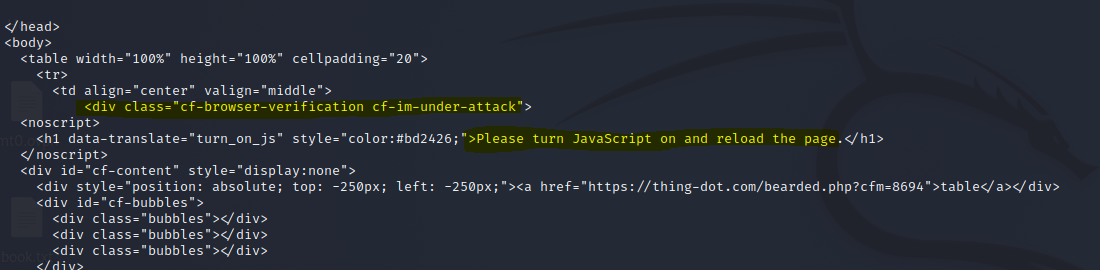 Now, in order to successfully request the html code of the page in bash, I had to set two cookies, "phpsessid" and "_cf_bm" with the curl command options. I used the cookies created in the urlscan detonation: