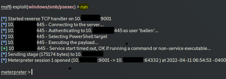 you should have a successful exploitation and a meterpreter reverse shell operational