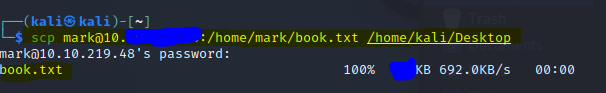 scp mark@victim_machine_IP:/home/Mark/book.txt /home/Kali/Desktop