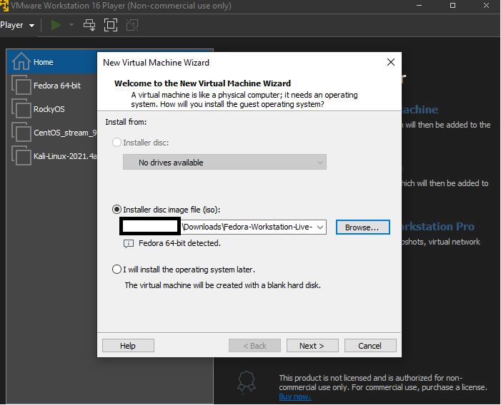 Open vmware workstation 16 (I use the free version for non-commercial use) and create a new virtual machine.