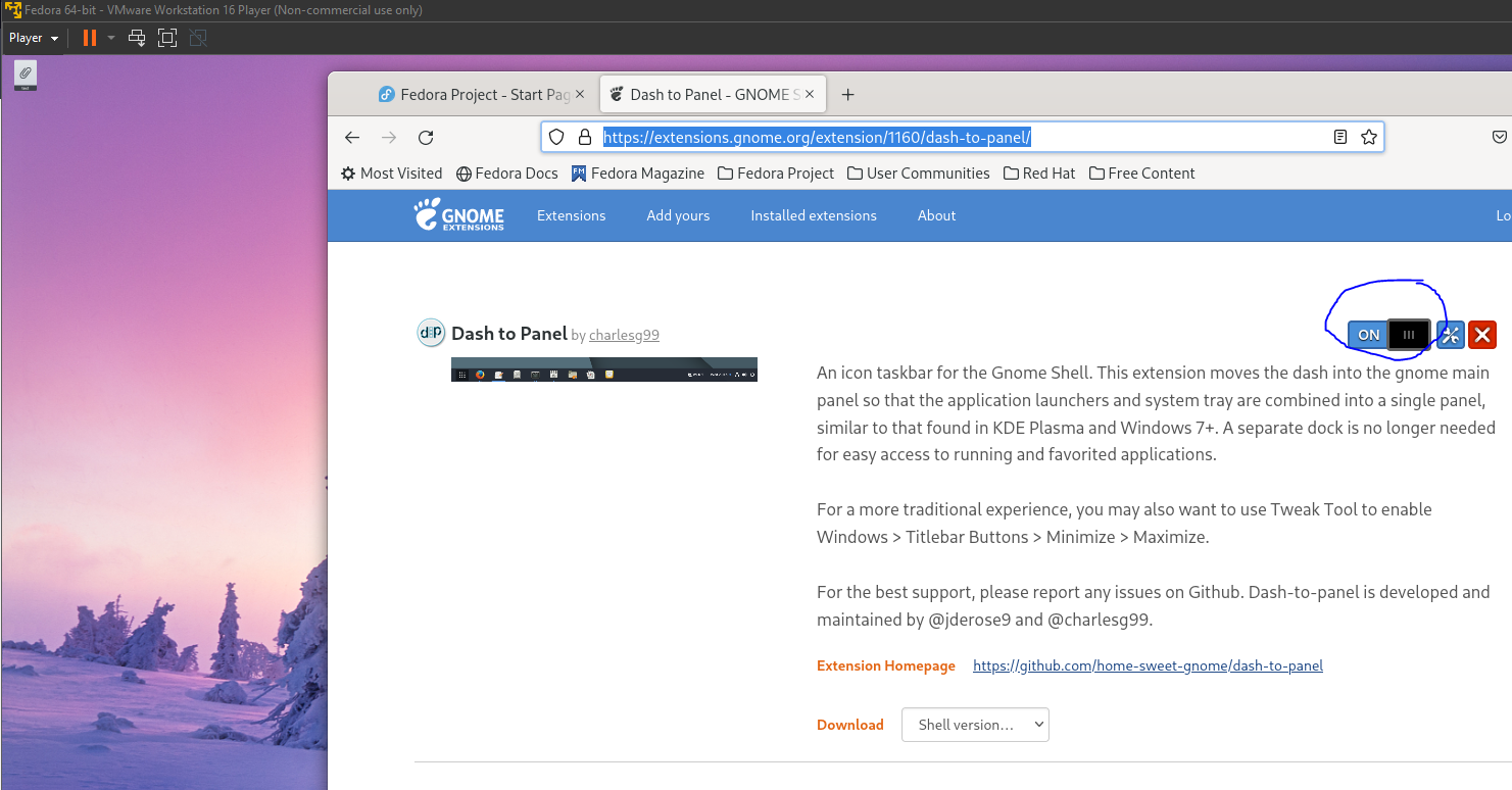A warning box will tell you at the top that you need to install gnome-extensions in your browser, go through with it and reload the page. Toggle the extension on and install it: