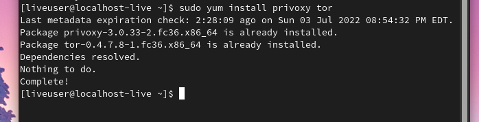 If you want to use the proxy in your shell, you can run where the --socks5 and --socks5-hostname flags force the connection through the tor service